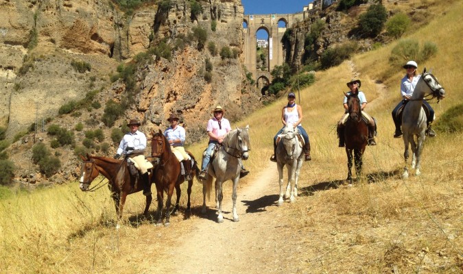 Volveremos a tocar diana a las 8´00 de la mañana para comenzar el día con un buen desayuno y reponer fuerzas para el tramo final de la ruta que, nos adentrará en la serranía de Ronda.  A las 9´00 llegaremos a la cuadra donde pernoctarán nuestros compañeros de camino, los caballos.  Una vez todos a lomos de nuestros equinos, continuaremos la ruta hasta llegar a la malagueña Ronda, cuna de bandolerismo por antonomasia, finalizando nuestra ruta en la bicentenaria Plaza de Toros.  Tendremos un par de paradas para estirar piernas y refrescarnos con un breve aperitivo.  Ya en Ronda, procederemos a embarcar nuestros caballos en un camión que los trasladará a la cuadra de inicio de la ruta.